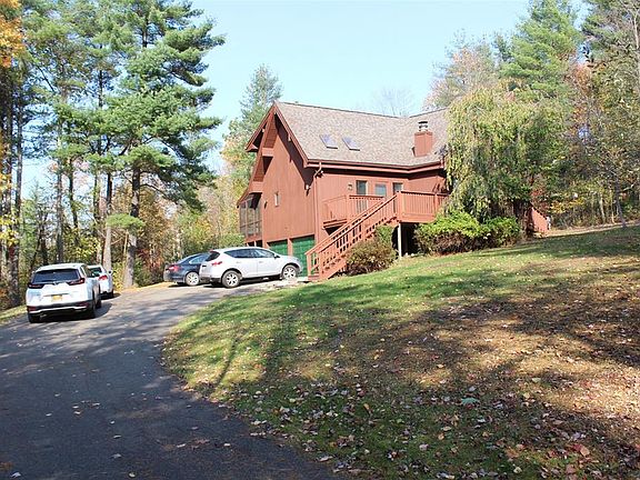 Acres of peace and quiet with this classic LINDAL cedar contemporary home nestled in the hills of Vestal. 4.63 acres. Exterior freshly stained. A roomy wrap-around deck to enjoy the summer season and there is plenty of room in the yard to add a pool. 2884 sq.feet with open second floor overlook to the living room's wall of windows and cathedral ceilings. These windows are south-facing for passive solar warmth in the winter. 4 bedrooms and 2 .5 baths. including a Master suite with cathedral ceilings, big windows, and sliding doors onto the balcony. Two car garage and more.