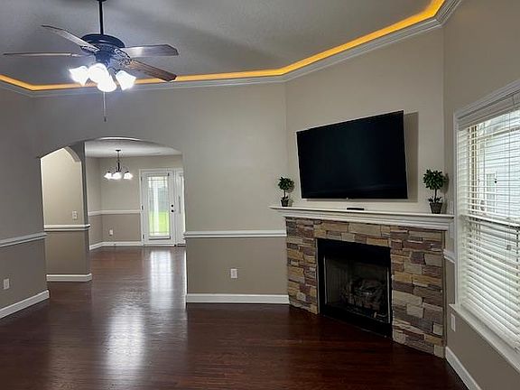 - Ceiling Fan(s), Tray Ceiling(s), Attic Stairs Pulldown, Fireplace, Soaking Tub, Solid Surface Counters, Split Bedroom Plan