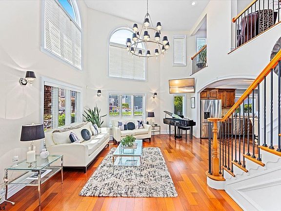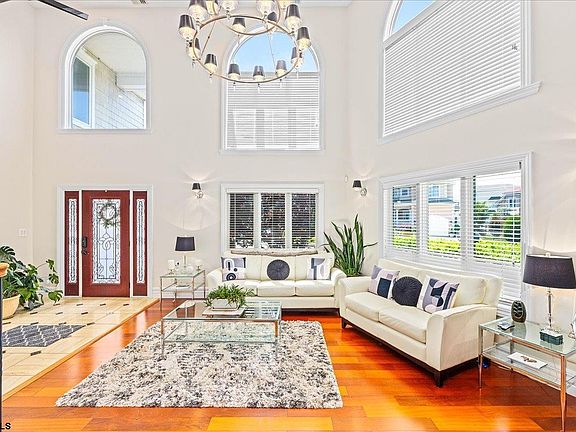 EXCEPTIONAL BAY VIEW ESTATE featuring 4 bedrooms and 4 full baths, including the adjacent lot buildable lot. This magnificent home combines elegance, comfort, and spectacular living. Step into an expansive two-story living room with soaring cathedral ceilings and grand windows framing panoramic bay views. Gleaming hardwood floors flow throughout the open floor plan, seamlessly connecting to a chef’s gourmet kitchen, complete with a large center island, stainless steel appliances, rich dark wood cabinetry, wainscoting, and sophisticated tray ceiling lighting. The formal dining room impresses with custom wainscoting and a built-in bar, while a versatile downstairs bedroom/office features bespoke cabinetry and a built-in desk. Upstairs, a sun-filled family room with a fireplace and wet bar opens to a deck that showcases breathtaking bay vistas. Two additional bedrooms and two full baths complete this level. The private third-floor master suite is a true retreat, offering a wet bar, his-and-hers walk-in closets, a spa-inspired Jacuzzi tub, and sliding doors to a secluded third-floor deck—perfect for morning coffee or sunset cocktails over the water. Enjoy outdoor living on the spacious patio, complete with a built-in entertainment space perfect for gatherings and relaxation. Outdoor living is equally spectacular: a welcoming front porch, attached one-car garage with abundant storage, a fenced backyard patio with pavers, and decks on all three levels ensure you enjoy the bay views from every angle. With the adjacent lot providing flexibility to add a pool or expand outdoor living, this estate offers unparalleled opportunities for customization.