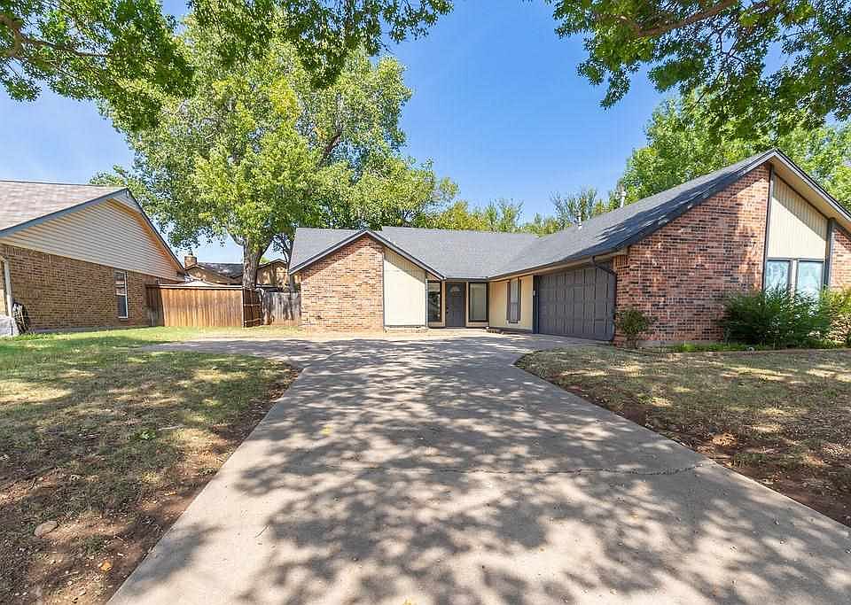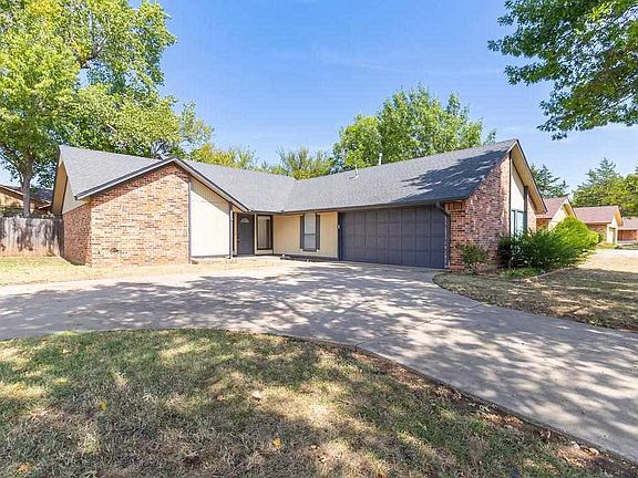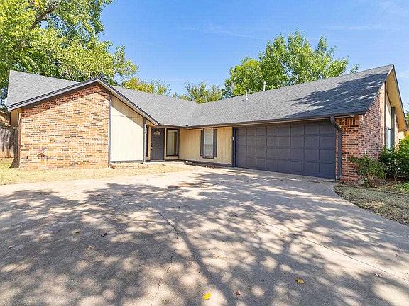 Looking for a spacious home with a great layout that offers lots of privacy for each bedroom, then you have just found your dream home. this home features two mature oak trees a the front of the property to welcome you home each day. The driveway is spacious and you can park multiple cars in the addition to the side entry, 2-cargarage. As you walk through the front door, you immediately notice natural light from the windows on either side of the front door as well as either side of the fireplace in the living room. There is a small entryway with ceramic tile floor to separate the door from the living area. The fireplace is wood-burning and the ceiling in the living room is vaulted with wood beams to give it a rustic feel. There is a nice size area off of the living room that could be a multipurpose room, either a reading nook, formal dining, formal living, play room, or study. There is a dining area inside the kitchen that has a sliding glass door to the uncovered part of the patio. The kitchen is spacious and has tons of counter space. The cabinetry is solid wood and custom built. Each bedroom is separately located from the other for privacy. There's tons of storage in this house with nice sized closets in each bedroom, 2 coat closets, and a large linen closet. The primary bedroom is opposite the living area from the other two bedrooms and has a large window that overlooks the backyard. There's an oversized sink in this bathroom as well as an updated shower. The back yard is private and has plenty of shade. You really have to see this home to appreciated the value. Call Kim Thomas today to schedule your tour of this fabulous home, 580-704-9916.