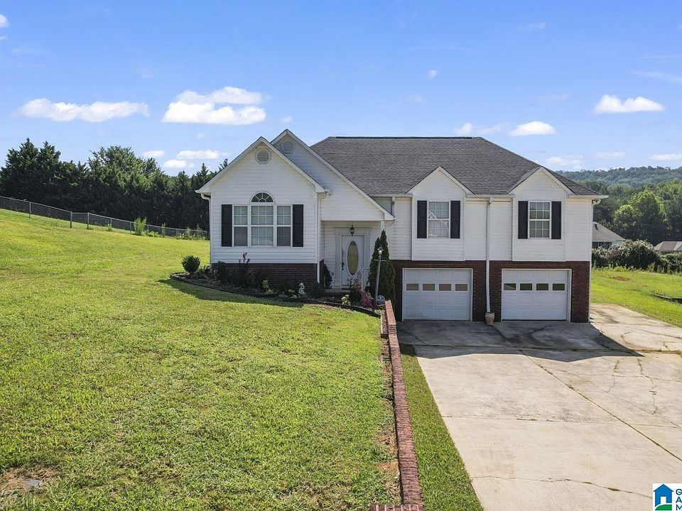 GORGEOUS IN GREYSTONE! This alluring split foyer home offers a perfect blend of comfort and entertainment. Maintenance-free brick foundation and vinyl siding. The fully decked above-ground pool invites you to unwind and enjoy outdoor leisure. Inside, a brick fireplace with gas logs and a mantle featuring elegant dental molding creates a cozy ambiance in the living room. The kitchen showcases oak cabinets, providing ample storage and a delightful space for casual dining. With three bedrooms and three bathrooms, there is plenty of room for everyone. The bonus room and media room add versatility, ideal for a home office, playroom, or entertainment hub. Gleaming hardwood laminate flooring throughout exudes elegance and ensures easy maintenance. Plus, a huge two-car garage and lots of added storage. This property promises an enjoyable lifestyle with its amenities and thoughtful layout. Seize the opportunity to make this charming home your own!