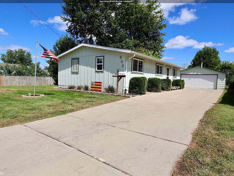 Welcome to this charming ranch-style home featuring 3 bedrooms and 1 full bathroom with an inviting open floor plan. The spacious layout makes it easy to entertain or simply enjoy everyday living. Outside, you’ll find a long cement driveway leading to an oversized 2-stall garage—perfect for a workshop, storage, or the ultimate man cave. Sitting on a double lot, this property offers a partially fenced yard with plenty of space for outdoor activities, pets, or a garden. With a newer roof already in place, this home is ready for its next owner to move right in and make it their own.
