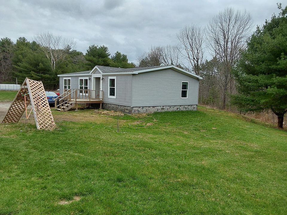 This three bedroom, 2 bath home sits on an open property with 9 acres and a small pond. Open concept living inside with glass doors that lead out onto a back deck great for BBQ's or bird watching. A mudroom with laundry brings you into the kitchen from the backyard. The front opens into a sizeable living room. A large master bedroom with private bath completes this property.