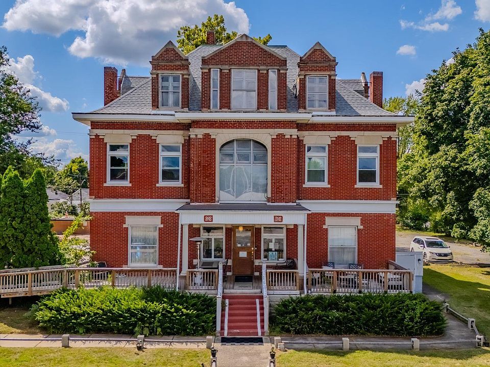STUNNING! Step into timeless landmark Marion mansion, where Old World charm meets modern updates. From the rich natural woodwork, pocket doors, and intricate glass details to the impressive foyer and grand staircase, every inch of this home tells a story of craftsmanship and grandeur. Enjoy multiple gathering spaces including a formal parlor, a formal dining room with built-in hutch, and a spacious main living room. The fully updated kitchen is bright, cheerful, and comes complete with appliances and gorgeous granite countertops. This residence offers 6 spacious suite-style bedrooms, 2 full baths, and 2 half baths. The finished basement is perfect for entertaining, featuring a 37’ bar and an expansive 42x34 recreation area with exterior access. The unfinished third level provides endless possibilities—let your imagination design the perfect space! Outside, the property sits on 1.26 acres, secured behind elegant wrought-iron gates, and includes a newer-built 3-car detached garage. Recent upgrades add peace of mind with a brand-new roof (2021), new gas furnace, vinyl replacement windows, and a new exterior deck. This one-of-a-kind estate is a rare opportunity—original with modern comforts, right in the heart of town!