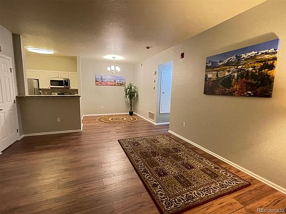 This lovely ground-level corner unit is a must-see! As you enter this charming home, you will immediately love the high ceilings, open floor plan, and 2-tone new paint. This home has so many great features including a cozy fireplace, tastefully designed kitchen (you will love this the most!), slab granite, backsplash, all brand new appliances, high-end Touch faucet!, and for gourmet baking there is even a convection oven with air fryer. Washer and dryer are neatly tucked behind laundry doors. Both full bathrooms are completely remodeled, with attention paid to little things like branded fixtures and double curved shower rods. Flooring is new too! The master bedroom is not only large, but also has a walk-in closet. Second bedroom is spacious as well with full size closet. Reserved parking spot is right outside unit. Front porch is west-facing and a perfect spot to enjoy the beautiful Colorado summer evenings! There is also a parking pass to park in non-assigned spots. Walking distance to schools, parks, playground, trails. Near shopping/restaurants, I-70, E470 and Buckley!