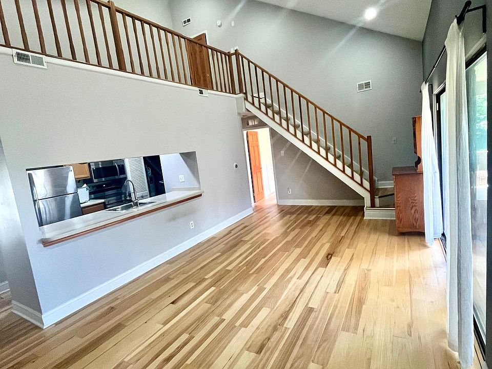 Oversized balconyVaulted ceilingsHardwood floorsOverlooking green space
