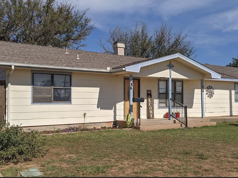 Simply Precious Ranch style home sits on 2 lots. Perfect for country living, retirement or that special place to call home. Huge fireplace. Ceiling fans throughout. ADA approved features throughout including carpet. Front drive sidewalk and back driveways have wheelchair approved ramps. Lovely front yard scenic view of the of the valley in Post. Huge backyard. Grand old shade trees. Covered patio parking. Carport 23 ft. long X 7.5 ft. wide. Has 2 storage buildings. Ample storage space inside and outside. Large laundry room. Washer, dryer and fridge will convey. Lots of space for RV in the back.
