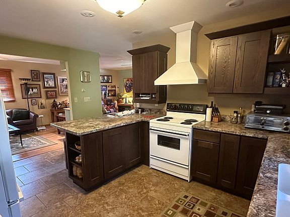 Great curb appeal in this ''not your ordinary'' ranch style home featuring beautiful mission style interior! Fantastic remodeled kitchen (appliances included) that opens into the dining and living area that is so roomy and well thought out. Remodeled full bath plus 2 bedrooms on main floor with one feauturing a fireplace. The lower level has a fabulous ensuite with egress window, electric fireplace and bath with walk-in tiled shower and tastefully done. Family room with bar and fireplace. All is well maintained and nicely updated. Detached oversized double garage and a park-like backyard with 3 gazebos, firepits, patio areas, and so much more for relaxation and entertaining family and friends. Newer concrete work, windows (but 2), and shingles in 2023. This home is conveniently located close to Middle School, Ice Arena, and Cadwell Park. MOVE IN READY!
