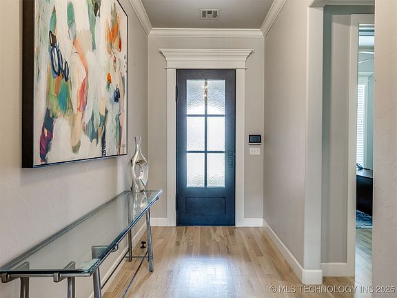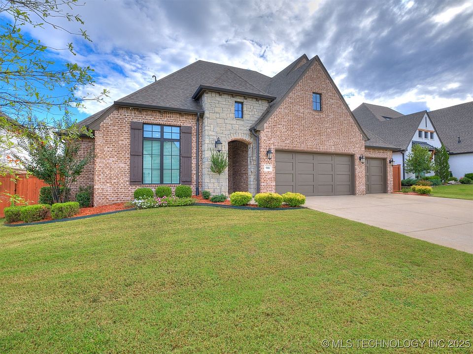 Stunning 5 bedroom 3 1/2 bath home with an office and an upstairs game room/flex room. The large primary bedroom with its ensuite is on the first floor. Luxury bath room and large all season walk in closet. There are 2 bedrooms on the other side of the home. Kitchen is open to living room and dining area and it has granite counter tops with gas range. The backyard is fully fenced with its covered patio. There are 2 bedrooms upstairs with the game room and a full bath. You can't beat the location of the location of this home. It is close to Tulsa Hills Shopping with tons of restaurants and shops. Home is also in Jenks School District. Come take a look.