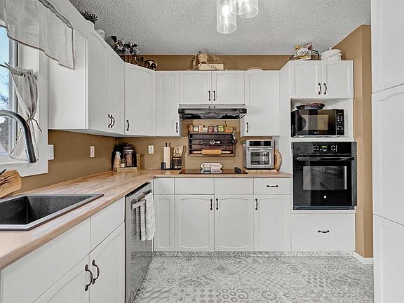 Beautiful, well-maintained 2-story home on a nice, quiet street in Beaverlodge. This home features fresh paint throughout and some new patterned vinyl plank flooring. The kitchen has been updated with a new dishwasher, fridge, countertops, kitchen sink and newly painted cabinets. Both bathrooms have new fixtures and have been freshly renovated. Barn doors for the main floor bedroom and downstairs, new window coverings included. Fenced backyard with storage shed and nicely landscaped flower beds. Both front and back decks have been re-stained, and there's room to build a garage. Call your Real Estate agent to book a viewing.