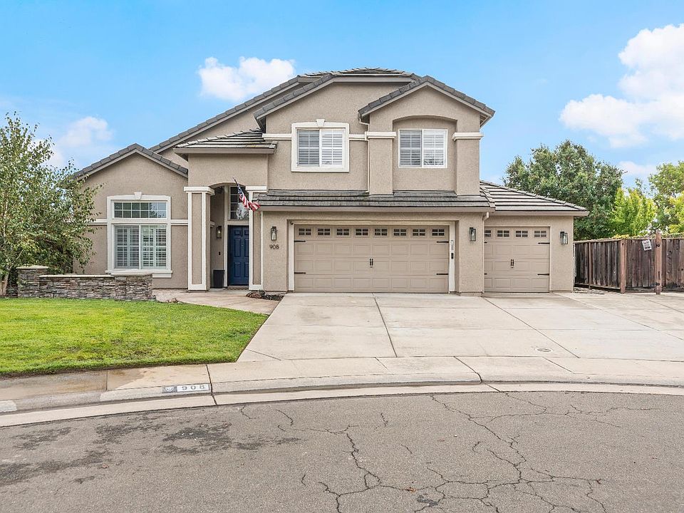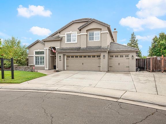Welcome to this inviting two-story home tucked away in a quiet cul-de-sac on Galt's east side. Offering 4 bedrooms, 2.5 baths, and approximately 2,130 sq ft of living space, this residence sits on an expansive 9,921 sq ft lot. Thoughtfully updated, the home features owned solar, a new HVAC system, updated flooring throughout, and a beautifully remodeled primary bathroom. The main level offers a bright living room with vaulted ceilings, a cozy gas fireplace, and a kitchen with a breakfast bar and nook that opens to the family room. Upstairs you'll find all bedrooms, including a spacious primary suite. Step outside to enjoy the sparkling pool and generous backyard, perfect for entertaining or relaxing. A 3-car garage, RV parking, and side carport provide plenty of space for vehicles, storage, and hobbies. Conveniently located near schools and parks, this home blends comfort, functionality, and a highly desirable setting.