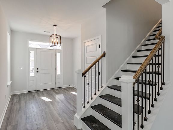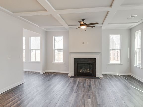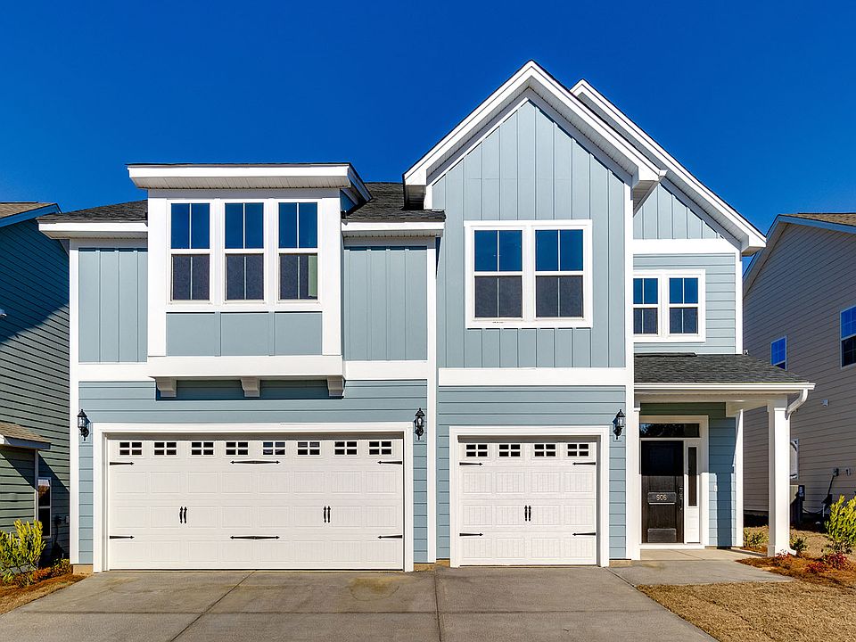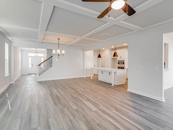 The Saluda is a two-story plan featuring four bedrooms, four bathrooms, and a sunroom. Immediately upon entry, you are greeted by the open-concept eat-in, kitchen, and great room with a fireplace and coffered ceiling. A nicely situated sunroom opens up and expands your kitchen and living area. A full bathroom sits just inside the entrance of the three-car garage, with a bench and cubbies. A first-floor guest bedroom completes the main level. Upstairs, the primary bedroom features a walk-in closet with a laundry room and an ensuite bathroom with dual sinks, and soaker tub, and a tiled shower. The primary bedroom has a boxed ceiling The second level offers three secondary bedrooms with private walk-in closets and three full bathrooms.