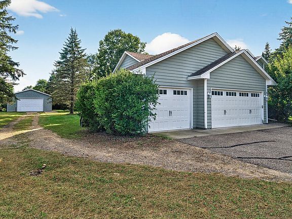 Get yourself some breathing room with almost an acre of land in this quiet Ramsey neighborhood. 4 BR, 2BA, 2,000 sq ft home. 3-car attached garage, plus a finished detached garage. This home is move-in ready, but there are some easy things that could be done to build instant equity such as landscaping. The upper level has a great kitchen that opens up to the living room and walks right out to the deck, plus two bedrooms and a bathroom. The primary bedroom on the upper level has a large closet and built-in vanity. Downstairs you will find a cozy family room with a gas fireplace, two more bedrooms and a bathroom. The detached garage is 26 x 36 and finished with tall ceilings, electricity, and is ready to host your wood shop and golf simulator.