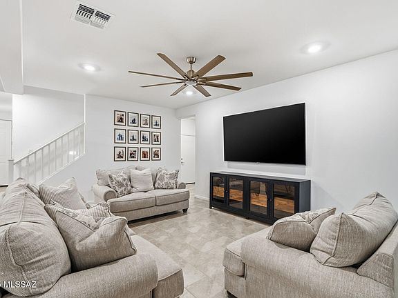 Discover exceptional living in this beautiful Vail home, located in one of the top-ranked school districts in Southern Arizona. Enjoy unmatched privacy with no rear neighbor and take in the stunning Southern Arizona desert and mountain views right from your backyard. At the heart of the home is an inviting open-concept great room and dining area, seamlessly connected to a modern kitchen boasting white cabinetry, stainless steel gas appliances, and sleek quartz countertops. The highly functional main-level living floor plan features a spacious primary suite, dedicated office, additional bedroom, and a full secondary bath-perfect for flexible living arrangements or multigenerational needs. Upstairs, you'll find three additional bedrooms, a full bath, and a loft. Tile flooring spans all main living areas, with plush carpet in the bedrooms for added comfort. Car enthusiasts and hobbyists will love the rare four-car garage, complete with epoxy flooring for durability and style. The community HOA provides exceptional amenities, including a pool, spa, scenic walking trails, and multiple parks. This home offers the perfect blend of comfort, function, and Southwest beauty-don't miss your chance to make it yours.