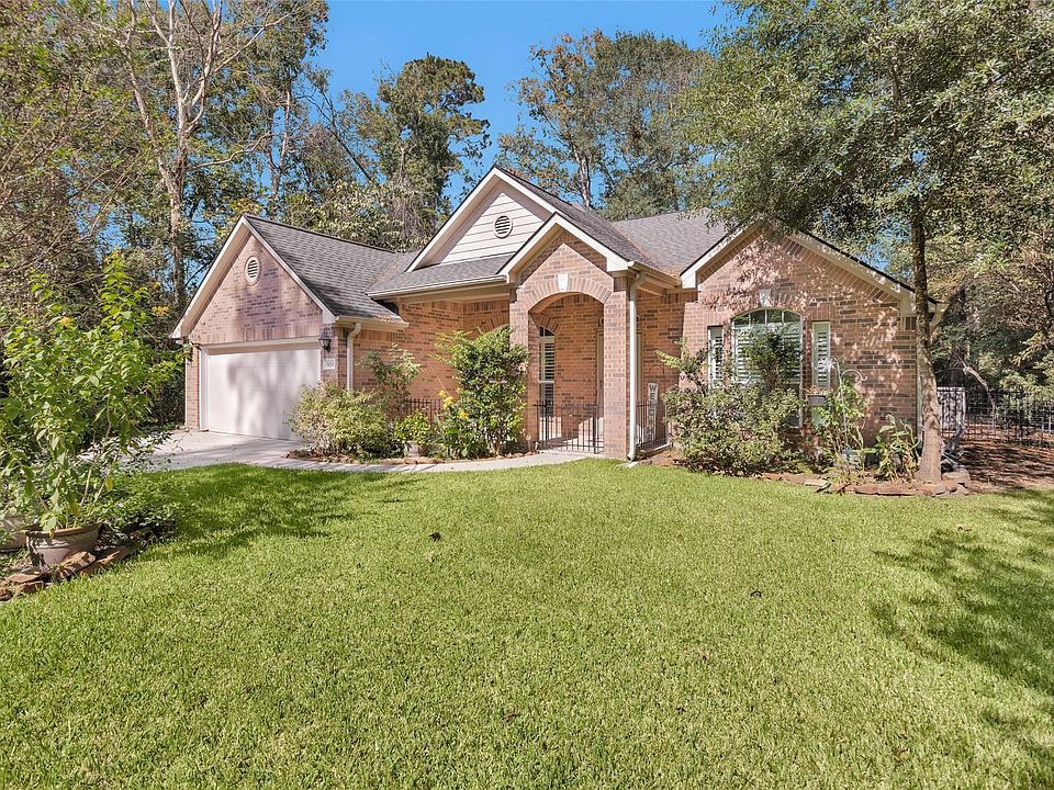 If you are looking for a beautiful home surrounded by woods with no close neighbors, look no more. Beautiful SS brick home offers tons of privacy w/no back or side neighbors. 2 lots total .413 acres. Large cov front porch greets you upon entering. Huge open living area is perfect for entertaining w/formal dining area, living room, spacious kitchen & more. Kitchen offers brand new tile floors, custom cabinets, island, breakfast bar + breakfast area w/window seat, granite countertops, large pantry, fridge stays. Split floor plan w/large primary suite w/sep shower, jetted tub, dbl vanities, large W/I closet. 2 addt'l BR + office w/french doors. Light & bright w/lots of windows to view the wildlife. Brand new HVAC May 2025, custom shutters, linen closets + hall closet for lots of storage, recessed lighting, Whirlpool water filtration system, sprinkler system, ADT Security system, gutters, wrought iron fencing, 2 large porches, fireplace & dbl wide driveway + much more.