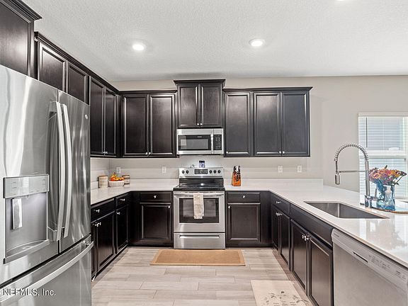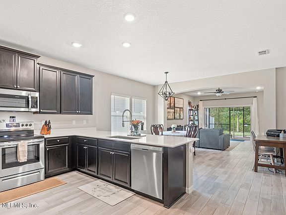 The spacious primary suite boasts a walk-in closet, luxurious bathroom with garden tub and dual vanities and a beautiful view overlooking the preserve. The additional bedrooms share a full bathroom and flex space, perfect for a playroom, office or home gym. Your backyard features a screened lanai with pavers and a fully fenced yard.The Mill Creek North neighborhood is centrally located to all that Jacksonville has to offer and features a low HOA fee and no CDD fee.