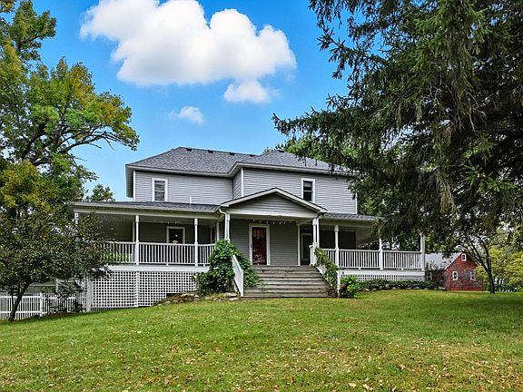 Welcome Home to your beautiful 2-story farm style home offering 4 bedrooms and 2 baths. Situated on 7 pristine acres with 5+ outbuildings, including a chicken coop and tons of mature trees. Beautiful woodwork and trim throughout the home. Take in the views on the huge wrap around porch. 3-car detached garage with concrete floors and electric and an unfinished storage area above the garage. The barn is insulated and has newer siding and roof with 12' doors, a bathroom, as well as above storage. Check out the "Train Shed" with separate living area and bathroom, with it's own Furnace and A/C. So many options, too many to list! Come check out for yourself to see what this beautiful property has to offer. Schedule your private tour today, before this home is gone!