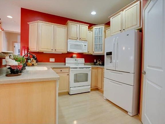 Welcome Home! End unit w/open floorplan living at its best, ample natural light, large private deck, beautifully finished kitchen w/maple cabinets, corian counters, corner pantry, GE appliances, plus sizable french door fridge w/fridge drawer and freezer. Built-in planning/breakfast table, grand formal dining rm, expansive living rm w/surround sound. Abundant storage, broad master suite w/private 3/4 bath, upgraded shower & walk-in closet.