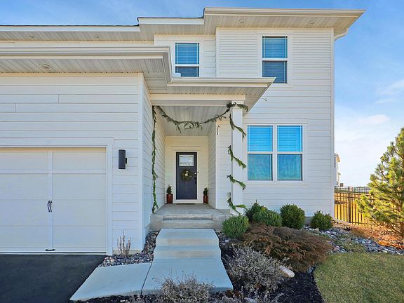 This enchanting two-story home is located in The Meadows at Wasserman Lake neighborhood. Positioned on a spacious corner lot, it was built in 2019 with stunning custom updates. It offers both convenience and serenity, just a short stroll from Victoria Elementary, parks, and scenic trails. The main level features a large foyer, an inviting office with custom French doors, and a cozy gas fireplace. Shiplap accents lead to the gorgeous kitchen with quartz countertops, custom cabinetry, a walk-in pantry, a customized dry bar with a wine fridge. Upstairs, a versatile loft complements the master suite, featuring pan vault ceilings and a spa-like bathroom. The lower level, with a roughed-in full bath, awaits your personal touch for a potential fourth bedroom and recreational room. Outdoor enjoyment is guaranteed on the maintenance-free deck, completing the perfect suburban lifestyle.