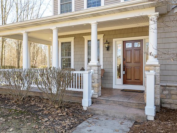 Video Tour Available. Superb quality at this executive estate on a private, wooded 2.2 acre lot located in Mystic Estates. 5 spacious bedrms, 5 baths & 4,434 fin sq ft. Brazilian cherry flrs in foyer & dining rm w/ crown molding. Living room features fireplace & relaxing views of nature through two-story wall of windows. Gourmet kitchen offers granite counters, cherry cabinets, stainless stl appliances & eating area. ML also includes laundry/mudrm, office w/ french doors & luxurious master suite w/ fireplace, trey ceiling and huge walk-in closet with built ins. Dramatic staircase with wrought iron spindles leads to U/L. 3 large bdrms all include walk-in closets. Divine lower level features family rm w/ fireplace, game room, bedrm, bath, exercise/media rm & abundance of storage w/ workshop area. Lot is equipped with basketball court, fire pit and storage shed. Mattawan Schools