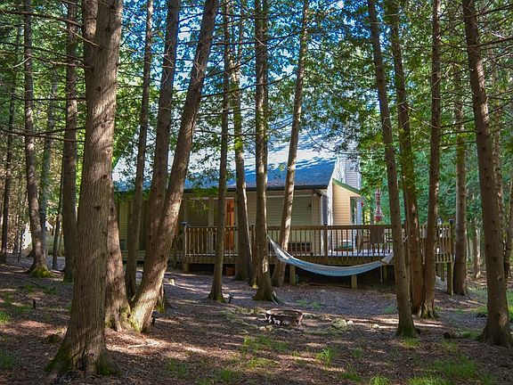 From this well-maintained home, you'll experience peaceful surroundings and acres of forest mere moments from the heart of Fish Creek activities. The three bedroom, two bath residence is all about indoor-outdoor living. There's a classic front porch, a screened back porch (complete with hot tub) and even a large deck for lounging in the afternoon sun. Inside, the living room features high vaulted ceilings and a fieldstone fireplace. The eat-in kitchen includes an island and full array of appliances. Upstairs, there's a loft overlooking the great room below, plus a master bedroom and bath. The 15 acre property has an oversized two car garage, garden shed, circular drive, and walking paths. Any time of year, you'll enjoy this special retreat.