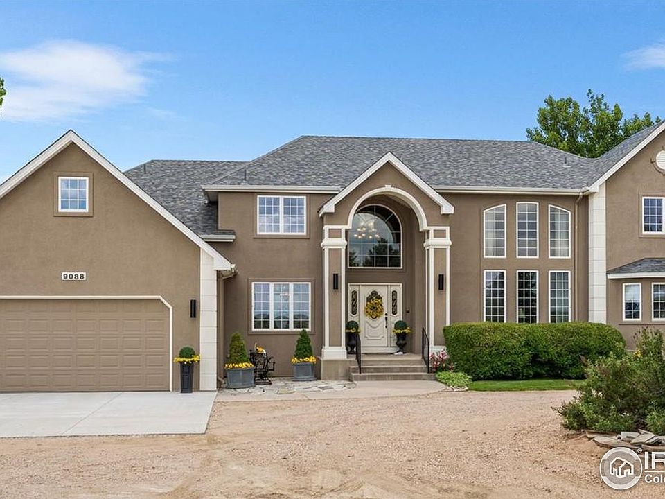 Welcome to your private oasis, nestled on 35 picturesque acres of Colorado countryside, offering unobstructed panoramic views of the Rocky Mountains. This extraordinary estate in Northern Colorado offers a rare combination of luxury living, guest accommodations, equestrian amenities, and versatile workshop spaces -perfect for those seeking space, serenity, and sophistication. At the heart of the property is a stunning 5,700-square-foot custom-built home that seamlessly blends craftsmanship, comfort, and breathtaking views in every direction. Designed with expansive living and entertaining in mind, the home features seven spacious bedrooms and five bathrooms, expansive decks and patios, a walk-out basement with wet bar, home theatre, and mature landscaping including a pond. The guest house is deal for visitors or multigenerational living. The one-bedroom suite is outfitted with vaulted ceilings, fireplace, a full kitchen, a cozy TV room, three quarter bath, and a three-car garage. It also includes a walk-in freezer, making it an excellent setup for hunters or those who love to entertain. The 2,400-square-foot (partially heated) shop provides exceptional space for hobbies, storage, or business use. Outfitted with one half bathroom, two 12-foot overhead doors and 220V power, it's a dream for car collectors, craftsmen, RV, or small business owners. Equestrians will fall in love with the eight-stall horse barn complete with individual runs, water, tack space, fenced riding arena, and ample roaming acreage. Whether you're training, riding for pleasure, or boarding horses, this property offers everything needed to support your equine lifestyle. Easy proximity to three golf courses, shopping, five minutes to I25, 45 minutes to Denver International Airport, and ten minutes to downtown Windsor, Colorado.