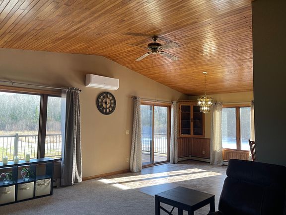 COUNTRY LIVING ON 20 ACRES, just two miles from town! This spacious split-level home offers four bedrooms, two baths, a large rec room with bar, hot tub, gas fireplace, and custom oak-built ins. The open-concept kitchen features oak cabinetry, granite countertops, built-in appliances, and vaulted oak tongue-and-groove ceilings with a sliding door to the deck. Enjoy exceptional storage with a 28x28 attached garage, a heated 28x28 detached garage with a drive-thru stall for ATVs or snowmobiles, plus multiple outbuildings—including a pole building, extra garage, and even a kids’ playhouse. A blacktop driveway provides easy year-round access. Located across from premier cross-country ski trails, this property also offers recent updates: new roof, new deck and railings, new flooring throughout, updated septic, and a new fire pit. Experience peaceful country living with town conveniences nearby. Schedule your appointment today!