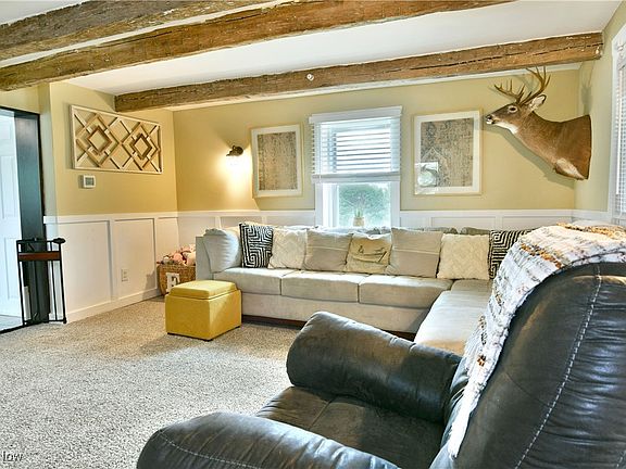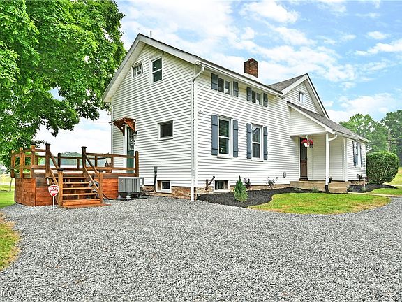 Picturesque country views neighboring White House Fruit Farm in Canfield! This sweet, modern farmhouse style bungalow home sits on an acre of land and is ready to move right in! Large, eat in kitchen with renovation done in 2020 , with shaker style cabinets, subway tile backsplash, floating shelves and stainless steel appliances. Many upgrades since 2020 to include,refrigerator, stove and microwave, ship lap walls, and a new exterior door to the new and expansive back deck! You will love the living room with original beamed ceilings, wainscoting, sliding barn doors and wood look tile floors. First floor bedroom currently being used as an office. 2 bedrooms on the second floor.The master bedroom has exposed brick and a glimpse of the original log home. So much charm and character! The bathroom is large and beautifully renovated with double sinks, subway tile surround and reclaimed wood walls. Full basement, great for storage. New roof Oct. 2020, new windows ,trim, flooring, light fixtures and paint throughout. Brand new oil forced air heat pump with central air (24), new 200 amp electrical panel, hot water tank, well filter, and water softener (22). New washer and dryer will stay! Beautiful stacked stone veneer on exterior foundation, a security system, new landscaping with a fresh layer of mulch, new gravel added to driveway and an extended front porch deck to enjoy the country views!. Literally every inch of this house has been updated! It's not often that you find a country property in Canfield Schools for this price and condition! Seller is willing to leave many furniture and decor items, so make your list!