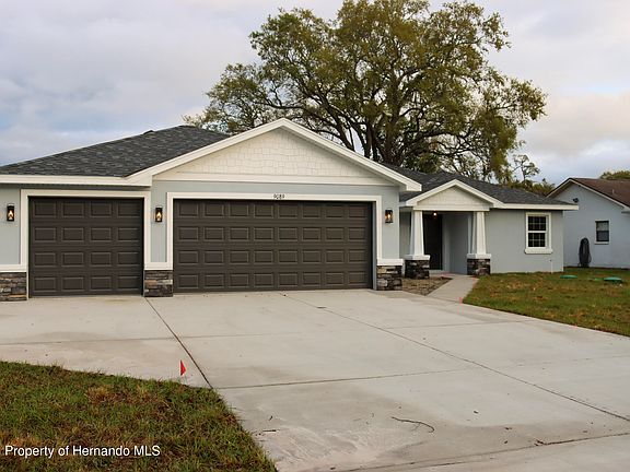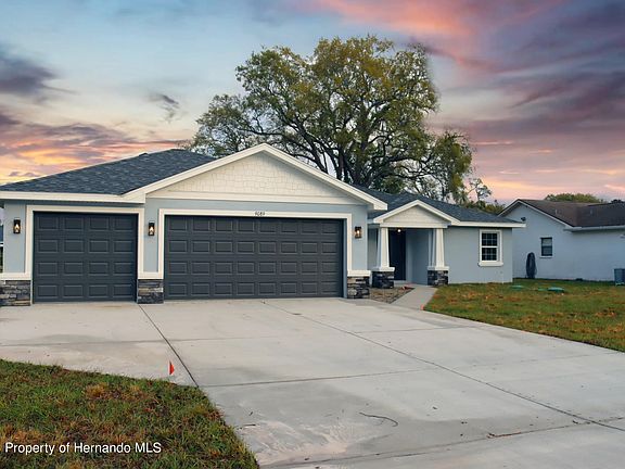 This brand new modern 2023 built 3/2/3 home is ready for immediate occupancy! Enter into the open concept layout thatoptimizes living space with the kitchen overlooking the living area, separate nook, dining room, and covered lanai. The well-appointed kitchen comes with all appliances including refrigerator, built-in dishwasher, microwave and electric range with pot filler spout. The master bath has a separate walk in shower and Soaking tub. This home boasts beautiful French doors from the living room and master bedroom that open out onto the covered lanai. Situated in a non HOA neighborhood conveniently located in the heart of spring hill with easy access to the sun coast expressway. Call for your appointment to view today!