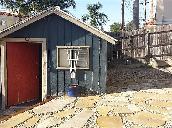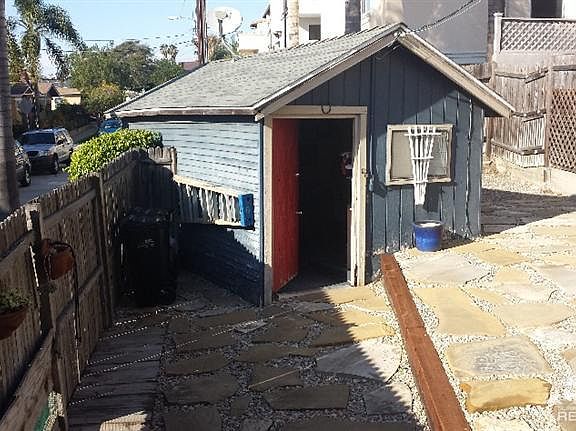Buildable view lot!! Charming original beach bungalow just blocks from the sand on a corner lot. Live in now, then build your dream home with great ocean views from this elevated lot. Or keep it as a rental. Quiet one way street. Next door is a small park. One bedroom, one bath. Hardwood floors. Freshly painted. Building in back is perfect for a home office or artist studio. Private back yard. Laundry area with space for stacked washer and dryer.