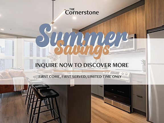 The Cornerstone: Sleek Elegance & Attainable Luxury in Calgary's West EndStep into The Cornerstone, Calgary's newest emblem of downtown living. A fusion of sleek design and modern comfort, this residence offers an urban retreat amidst the vibrant West End. Here, you're not just choosing an apartment; you're embracing a lifestyle.From Office to Home: Our building, once an office tower, has been thoughtfully transformed into a symbol of urban renewal and community reinvention. As you step into The Cornerstone, you become part of Calgary's exciting revitalization journey, where each apartment resonates with the spirit of change.Living Spaces: Discover our collection of 2 & 3 bedroom apartments, each crafted with an eye for elegance and functionality. From cozy charm to expansive allure, find a space that resonates with your style. Enjoy the openness of high ceilings, the chic touch of quartz counters, and the convenience of in-suite laundry.Your View: Each apartment boasts a private balcony, offering you a serene spot to unwind and gaze upon the city's pulse. The world feels different from up here more peaceful, more exciting.Comfort and Style: At The Cornerstone, comfort meets chic. The modern urban suites are designed with spacious floor plans, tall ceilings, and oversized windows, ensuring a living experience that's both comfortable and stylish.Community Living: It's not just an apartment; it's a community. With pet-friendly policies and heated underground parking, every aspect of your lifestyle is considered.Your New Neighborhood: Nestled in the heart of the West End, The Cornerstone positions you within reach of Calgary's finest. Whether it's parks, paths, transit, or the downtown buzz, your new home is at the center of it all.Discover The Cornerstone: Ready to elevate your lifestyle? The Cornerstone is more than a residence; it's a place to call home. Contact us to find out how you can be part of this exclusive downtown experience.