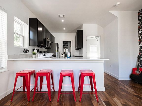 Wonderful and eclectic 3/2 house built in 2019. Option for a detached 4th 12x14 Bedroom / studio/ office for an additional fee. About the property: This house: One bedroom is a first floor master , it's 12x12 a and the other two are upstairs and smaller (10x10)but hold Full/queen beds and have closets. One room could be an office/ Study and the outdoor detached studio could be a wonderful addition: Nice shaded yard, great front house neighbors. Pets negotiable. Location Just minutes from the HOT East 6th street entertainment corridor. Near Austin Bouldering project climbing gym, Friends and Allies Brewery, Sa Ten Coffee, Austin East Ciders and easy access to highway and airport! Tenant pays some utilities: Electric, trash water, wifi. Bonus space: Stand alone studio available 12x14 /$700 / month.