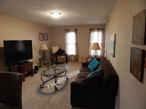 Fully furnished well kept apartment in a beautiful Kenmore Town of Tonawanda neighborhood. Great location, close by to all shopping, restaurants, bus lines and less than 2 minutes to the thruway. Be to downtown Buffalo, Williamsville or Niagara Falls in 15-25 minutes. Perfect location to be away from the congestion of the city, but close enough to enjoy all Buffalo and the Niagara region has to offer. The apartment: Second floor Bedroom 11.5 x 9.5 Living Room 20 x 11.5 Kitchen 13 x 13 Bath 9.5 x 6.5 Washer and dryer in basement Water is included One other apartment in the building The perks: Huge shaded back yard -partially fenced All new windows installed last year Includes Water The rules: $1100.00 a month 1 year lease Month to month rental available for additional $50.00 a month Tenant pays gas, electric and cable Credit and background checks required $1100.00 security required with approved credit No pets No smoking No subletting Good to excellent credit a must Call Jo Ann or Brian I year lease will convert to month to month after first year is up.