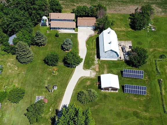 Acreage opportunity 3.3 acres. 2 Story home with over 3,000 square feet finished, Unique floor plan with many potential lay outs. Upper level could be a Master suite with kitchen bath or separate family living quarters, studio/apartment. Multiple rooms for Living room or dining room. Detached garage 24x36, 2 story Barn 32x50 metal roof, 24x24 Wood shop! Located on the corner of Big Rock and Moline Rd. East of HWY 63 1 property east of Waterloo city limits. Efficient Solar Power units to reduce utility costs, energy savings.