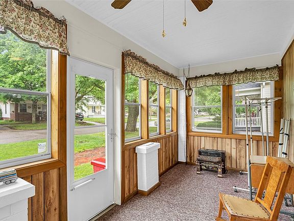 Take a Look at this Fabulous New Offering!! This tidy Home w/Quality Updates makes great use of space & has an outstanding outdoor area but most importantly, is still affordable! Darling front porch features original wood ceiling and is surrounded by windows giving you a light & airy feeling to be enjoyed from the porch swing. Generously-sized living room features classic French doors that leads to outstanding Eat-in Kitchen w/light cabinetry & stainless steel GE appliances. Both bedrooms offer ample closet space. You will also appreciate the nice corner storage & walk-in shower with modern tile surround in the recently updated bathroom (2019). Laundry room is equally functional in size & includes convenient drying rack. Replacement windows can be found throughout & hvac/water heater replaced in 2017-2018. Partial basement provides easy access to mechanicals if needed & is perfect for a storm shelter or extra storage. Back porch also provides “more space” & includes shelving for kitchen overflow or your other needs. You will then see that the back yard is a GREAT place to extend your living space in the warmer months!! There is plenty of room on the deck which has an off-set area complete with doggy ramp & overlooks the fully fenced yard!