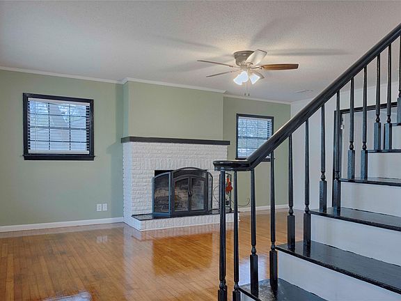 Striking petrified wood fireplaceGracious livingNatural lightInviting main levelBeadboard ceilingsExpansive lotDedicated laundry room