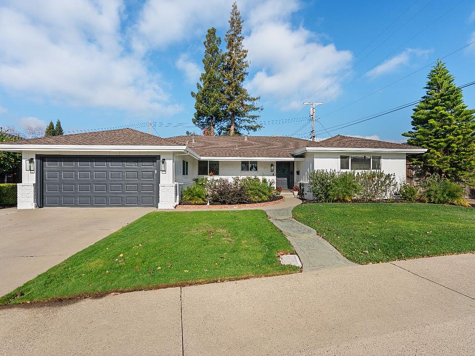 A picture-perfect home! Enjoy your morning coffee on the porch and wave to neighbors walking the Edgewood loop in the desirable Lakewood neighborhood. This home has been thoughtfully upgraded with modern finishes throughout. The kitchen is a true showstopper with a stunning stone backsplash that elevates the ambiance, new tile flooring, quartz countertops, and stainless steel appliances. You'll love the formal living room with its built-in bookshelves and window seat that creates a cozy, modern retreat. The dining area opens into the family room, giving the home a warm, functional, and connected feel. The bedrooms offer generous space, and the bathrooms are beautifully updated. The main bathroom includes a dual sink vanity and a gorgeous shower-tub surround. The primary suite features a walk-in shower, double vanity, and french doors that open into the backyard. Don't forget the bonus 4th bedroom perfect for a home office, guest room, or extra flex space. Additional upgrades include a new HVAC system. The backyard is designed for low maintenance enjoyment with turf and an inviting oasis like setting. Truly move in ready, this home is turn-key & charming all within walking distance to Lodi Lake.