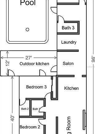 Large open swimming poolTwo master suitesGranite countertopsNew outdoor kitchenFront and back porchesBrand-new open floor planCeiling fans