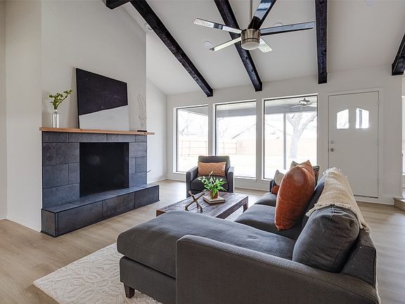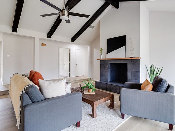 Nestled in the sought-after Willow Creek subdivision, this stunning home offers a perfect blend of charm and modern updates. The light and bright interior is enhanced by striking dark-beamed ceilings and blonde ash-colored NEW Luxury vinyl plank flooring, with plush carpeting in the bedrooms. A sleek, tiled fireplace adds sophistication to the sunken living room, which also features a versatile bonus space—ideal for a home office or formal dining area.