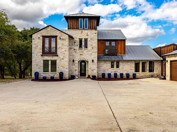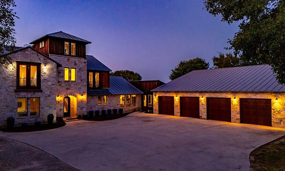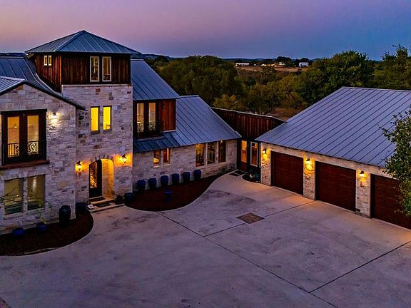 Amazing custom home sitting on 3.38 acres w/ Pedernales River frontage. The home features a lg open living concept w/ lg windows overlooking the property & river. The lg kitchen features gorgeous granite countertops, stainless steel appliances, side by side freezer/refrigerator, dbl ovens, microwave & wine refrigerator. The island holds the cooktop w/ plenty of work surface. The bar provides additional seating. A modern fireplace in the living area is a beautiful focal point. A lg sunroom overlooks a beautiful sitting area/garden & a pool w/ current flow. Guest bedrooms all have en-suite bathrooms. Owners suite flows into lg bathroom w/ dbl vanity, soaking tub, walk-in shower & huge divided his/her closet. From there you can enter the owners office wh/ can be converted to a workout room if desired. The 3rd floor incl. a comfortable library w/ access to an outdoor deck that gives you far reaching views. An elec. lift allows you to move items to the second level if needed. A lg 4 car garage accomodates a workshop w/ outlet for a welder and is backed by an enclosed RV storage bay. A bay of 48 solar panels greatly reduces your electric costs. Springs feed the river w/ lg deep pool