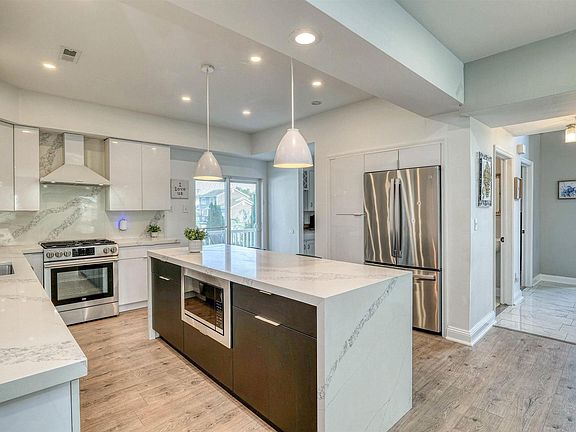Modern kitchenCorner propertyGround-level roomCenter islandStunning bay viewsDramatic soaring foyer ceilingUpdated appliances