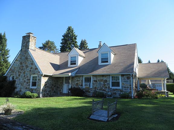 Spacious cape on 1.70 acres in Downingtown Area School District. Beautifully maintained property features a huge kitchen with beautiful mix of materials including brick cooking area, fireplace with wood burning stove, breakfast bar seating and large dining area. Well sized dining room, living room with stone fireplace, first floor bedroom currently used as a den, full bath and office complete the first floor. Upstairs find two large bedrooms, hall bath and two additional large rooms ready to be finished into additional bedroom living space. Full basement features unfinished space with laundry area as well as finished game room with beautiful brick fireplace wall. Updated windows with beautiful light throughout the home. Detached three-car garage with storage space above and fenced yard. Plenty of parking in large driveway and flat level lot set back off the roadway with certified septic system! Low taxes! Close to all major arteries and shopping. Make your appointment today to view this unique property!