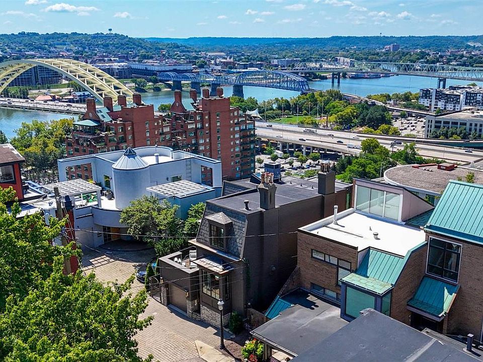 Best City & River Views! This exquisite home has been thoughtfully renovated with a focus on its breathtaking views. Floor to ceiling custom bronze windows, gorgeous wood floors, & recessed lighting are standout features. The chef's kitchen boasts Franke, Rohl, Thermador, & Sub-Zero appliances, a Calcutta marble countertop, & custom cabinetry. Enjoy entertaining in the spacious living room framed by expansive windows, or retreat to the primary suite featuring serene views, a fireplace with custom stone mantle, a renovated spa-style bath, & a walk-in closet. The second bedroom is equally well appointed, while a sunroom/office offers even more views to enjoy. Expansive decks provide the perfect setting for outdoor gatherings. Additional highlights include a garage with an electric car charger & many recent updates. Conveniently located with easy access to downtown, NKY, & major highways. Offers open for 48 hours. No escalation clauses.