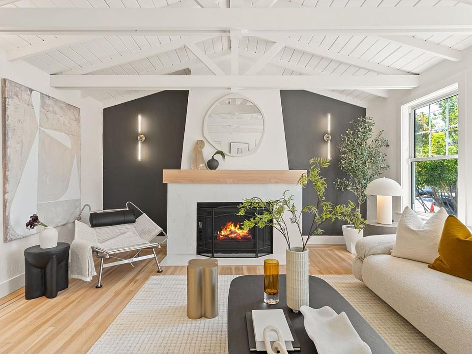 The main residence's airy floor plan highlights vaulted ceilings, hardwood floors, and a sleek fireplace as the centerpiece. The kitchen combines beauty and function with brand-new appliances, a gas stove with pot filler, pull-out pantry shelving, and a stylish island. Each bath is brightened by solar tubes, while the new primary suite features a curbless shower, double vanities, a spacious walk-in closet, and direct access to the deck for seamless indoor-outdoor living.