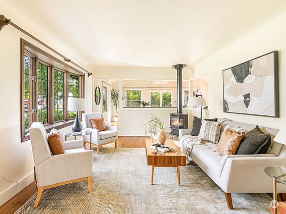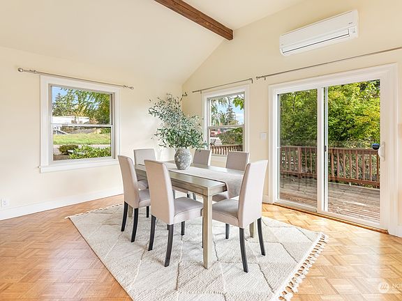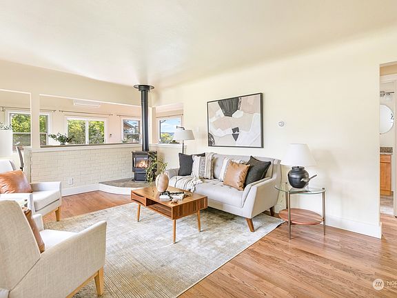 So much land, so many possibilities! This sunlit, spacious home sits on a shy half acre. The huge, finished garage is perfect for working & showcasing items, & can hold 2+ cars, with additional parking for 4-6 cars off-street. The main floor boasts a renovated kitchen, living room w/gas fireplace, dining room w/deck & Mt. Rainier view, two bedrooms, and one full bath. The fully finished daylight basement adds a large family room, three bedrooms, another full bath, & a laundry room. Perfect multi-generational home or easy ADU conversion for the lower level. This gorgeous property has so much to offer, a true in-city oasis with its luscious sunny lot with many fruit trees. Mini split heating & A/C, new sewer liner, this is a must-see home!