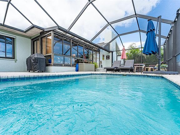 Rare Waterfront Opportunity with No Backyard Neighbors—Just Florida Wildlife! This custom built home offers the perfect blend of privacy, nature, and boating access. Situated on a deep-water canal with direct access to Tampa Bay, it's ideal for larger vessels and water enthusiasts alike. With NO HOA or CDD and situated at a higher elevation that has never flooded. This home features an open layout with modern finishes, offering 3 bedrooms, 2.5 bathrooms, plus an office, family room, and a living room with a cozy rock fireplace. The standout feature is the expansive Florida room—perfect for year-round relaxation while enjoying panoramic water views and watching dolphins and manatees swim by-an experience that truly never gets old. Outside is just as great with a large screened patio and heated pool that has built-in benches—perfect for relaxing while taking in waterfront views. Whether you're entertaining or just enjoying a quiet moment, this outdoor space is made for it. Recent upgrades include the following. Roof (2018), HVAC with UV Sterilizer (2023),Mini Split AC for Florida Room (2021), Hot Water Heater (2024), Electric Panel (2018), Pool Pump (2024), Insulated Garage Door (2025), Polyaspartic Garage Flooring (2025), Kitchen Reverse Osmosis System, Water Softener, Tongue and Groove Ceilings, Double-Pane Windows, 10,000 lb Boat Lift, assumable flood insurance $1,214/year. If you’re looking for a waterfront home with space, privacy, and majority of the work already done, this is the one. Enjoy something special that very few waterfront properties have-deep water, unrestricted Bay access, and NO BACKYARD NEIGHBORS.