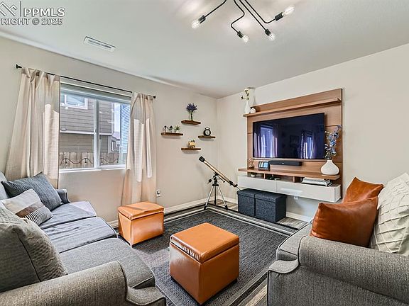 Absolutely pristine and better than a model home! Located in a highly demanded area near parks and walking trails, this 3 bedroom, 2.5 bathroom home features a finished garage and beautiful some mountain views. The spacious kitchen boasts a center island and comes complete with all appliances—including washer, dryer, refrigerator, and deep freezer. Designed with walk-in closets and ample storage throughout. Enjoy the comfort of A/C and the convenience of a full smart home setup featuring an alarm system, video doorbell, Flair smart vents, power window shades, and more. Conveniently located near military bases and the Powers Corridor. Truly move-in ready with exceptional attention to detail—don’t miss this amazing opportunity!