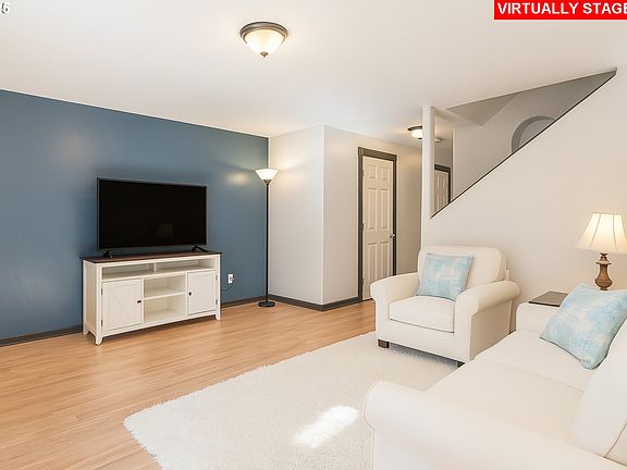 Two-car garageCovered deckDouble closetsStorage cabinetsSpacious bedroomsWood laminate floorsBuilt-in dishwasher