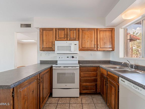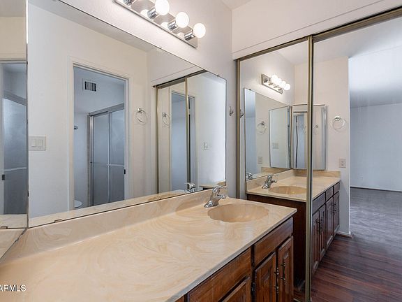 Welcome to this beautiful block home with great floor plan and close to many desirable amenities in Mesa. This home includes popular features: large great room with skylight and stone fireplace; formal dining room; kitchen with an abundance of cabinetry & breakfast bar, large breakfast room; huge laundry; 3 large bedrooms! All of the bedrooms as well as family and dining have laminated wood flooring - no carpet here! Full width extended back covered patio! Full block fence in back yard. Prime location just minutes from shopping, dining, and major freeways.