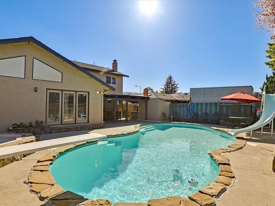 GILROY CHARMER! This 5 bedroom/3 bath home is 2920 SF on a 7751 SF lot. Located in the westside quadrant of town, this home is light, bright, spacious & inviting. There are too many quaint characteristics about this home to mention. Granite countertops, 2 downstairs bedrooms/ 1 with a bath perfect for In Laws or guests. Recessed lighting, granite countertops, warm laminated flooring, tiled floors & staircase, vaulted wood beamed ceilings, solar panels & a cozy fireplace. The primary bedroom offers a sitting area with two large closets, a sunken tub & separate shower. Enjoy the sparkling pool & Spa, outdoor BBQ & Kitchen area for those warm summer days! Centrally located near shopping, restaurants, walking trails, dog park & local wineries. A close drive to beaches in Santa Cruz & Monterey Bay. Rod Kelley Elementary & Christopher High School. Escape from the hustle & bustle of Silicon Valley and enjoy all that Gilroy has to offer. WELCOME HOME!